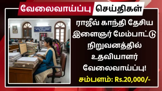 ராஜீவ் காந்தி தேசிய இளைஞர் மேம்பாட்டு நிறுவனத்தில் உதவியாளர் வேலைவாய்ப்பு! சம்பளம்: Rs.20,000